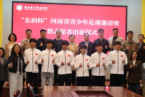 4月16日上午,由河南省慈善联合总会、登封市慈善总会、郑州体育职业学院联合主办的东润杯·河南省青少年足球邀请赛支教志愿者出征仪式,在郑州体育职业学院隆重举行。河南省慈善联合总会副秘书长赵二晓、项目部主